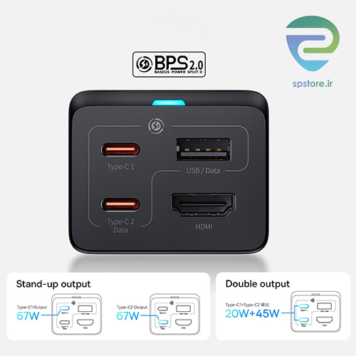 شارژر رومیزی Baseus GaN5 Pro 67W مجموعهای از پورتهای پرسرعت را در اختیار شما میگذارد: