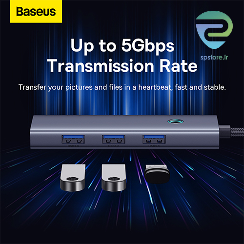 پورتهای USB3.0 این هاب دادهها را با سرعت تا ۵ گیگابیت بر ثانیه منتقل میکنند. این قابلیت به شما این امکان را میدهد که فایل های حجیم مانند عکسها، ویدئوها و اسناد مهم را به سرعت بین دستگاههای مختلف منتقل کنید و زمان خود را بهینه کنید.