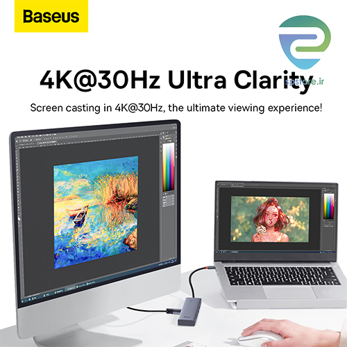 هاب ۵ پورت باسئوس مدل Baseus HUB UltraJoy کیفیت تصویر ۴K@۳۰Hz را ارائه میدهد. رنگها طبیعی و پرجنبوجوش هستند و جزئیات با وضوح بالا نمایش داده میشوند. این ویژگی تجربه بصری شما را هنگام تماشای فیلمها یا ارائهها بهبود میبخشد.